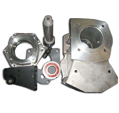The GM 4L60E adapter to the Land Cruiser 19 spline transfer case is 8.250″ in length. And the overall length of the transmission and adapter is 30.50″. The adapter material is 356 T6 heat treated aluminum alloy. The adapter kit includes a 2-piece adapter housing, spud shaft w/ 19 spline, GM VSS sensor, t-case shifter bracket, t-case bracket spacers, snap rings, retainer, sealed bearing, gasket, nylon lock nut, fastening hardware, and adapter instructions.