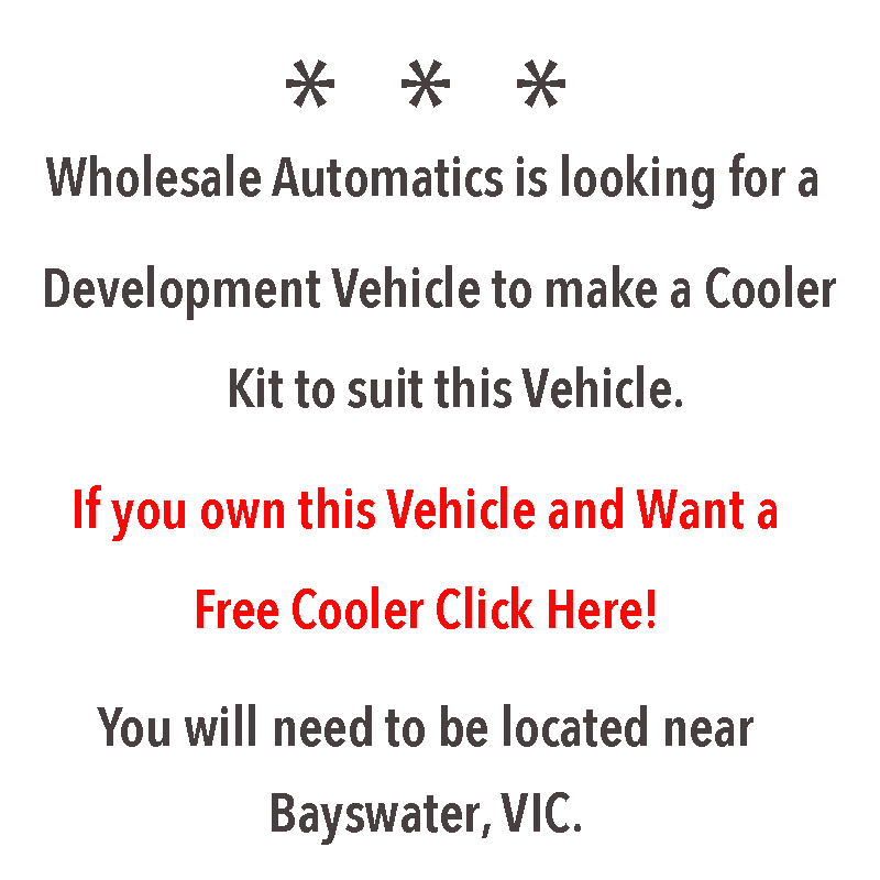 If you own this vehicle and live local to Wholesale Automatic Transmissions in Bayswater, VIC, get in touch with Rodney on Mondays to Wednesdays on (03) 9762 8004. By participating in the program you will receive a Transmission Oil Cooler Kit for your own vehicle fully installed and free of charge!