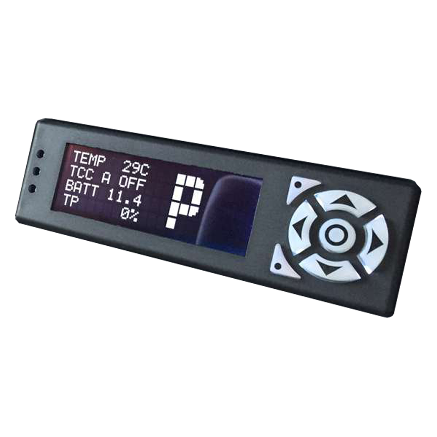 A handheld display providing a simple text based, basic adjustment of the COMPUSHIFT controller in addition to the functionality from the COMPUSHIFT Set Up app on your mobile device. Not required for proper COMPUSHIFT operation.